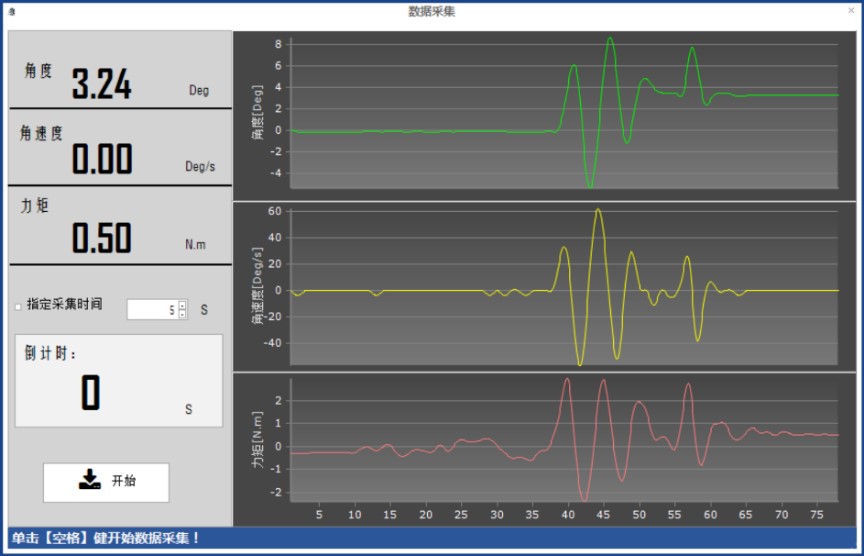 本設(shè)備配備的數(shù)據(jù)采集模塊,可實(shí)時(shí)采集角度傳感器,角速度傳感器,力矩傳感器的信號,并能一鍵對傳感器信號進(jìn)行清零,從而保證試驗(yàn)開始前的清零狀態(tài)。此外,數(shù)據(jù)采集模塊集成電源加載模塊、信號處理模塊以及信號換算模塊等,保證傳感器信號的精確度。